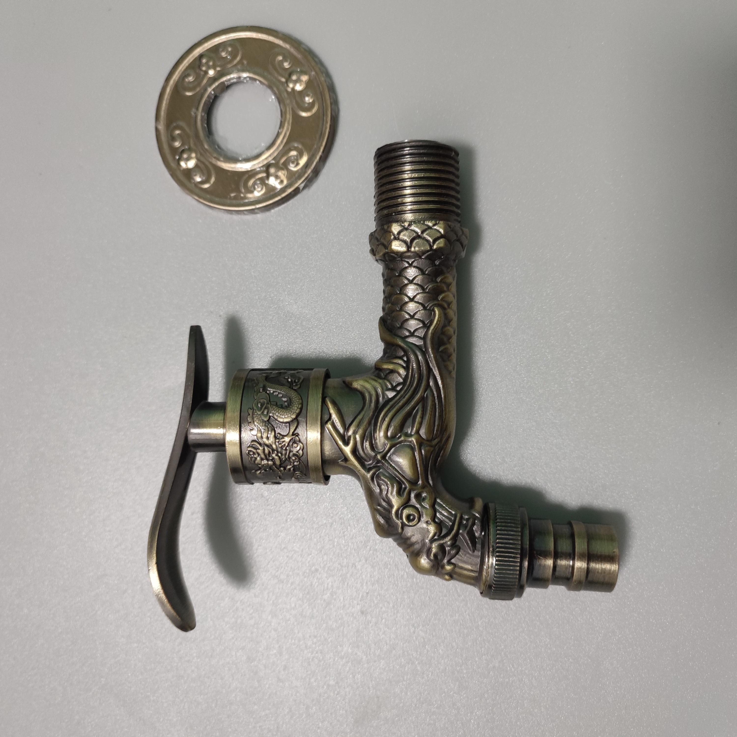 G1/2 fish pattern high quality alloy metal fast on tap garden faucet
