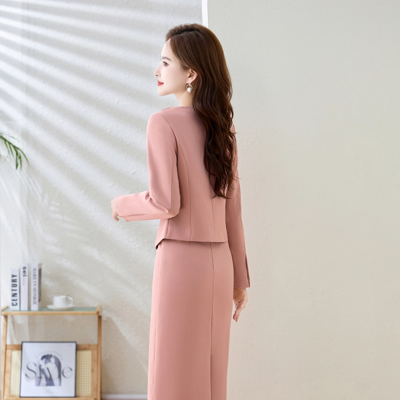 office wear uniform yound lady pink suit jacket skirt set free shipping